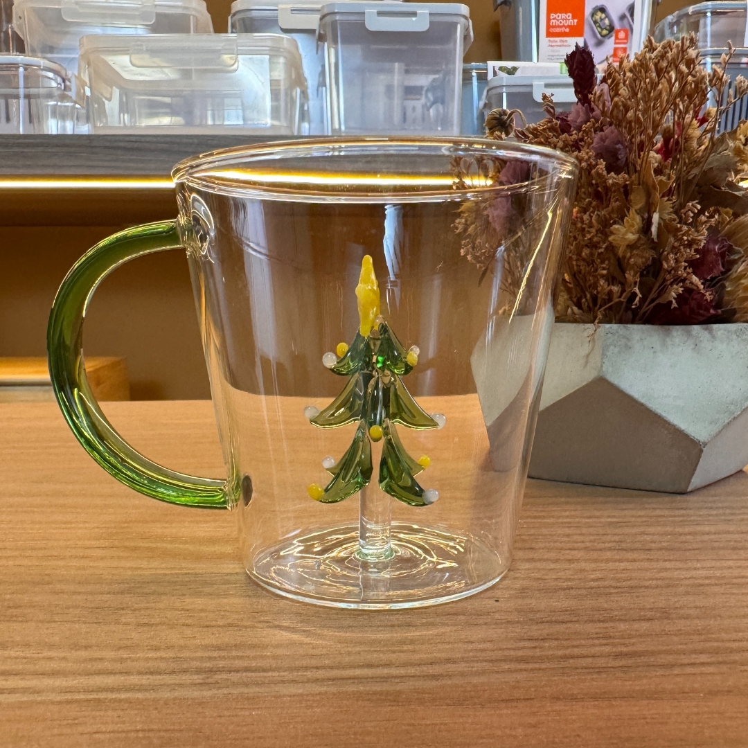 Fabricada em vidro borossilicato — leve, resistente e com transparência cristalina — ela acomoda 300 ml de bebida, ideal para cafés generosos, chás aromáticos, cappuccinos cremosos ou receitas natalinas como chocolate quente com especiarias
