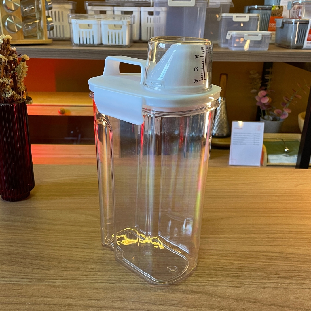 Perfeito para armazenar e dosar produtos como sabão em pó, amaciante, detergente e grãos diversos com precisão
