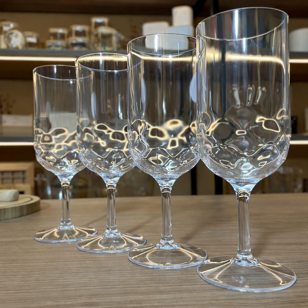 Produzidas em poliestireno de alta qualidade, oferecem aparência de vidro com muito mais resistência, garantindo segurança e conforto no uso diário e em eventos