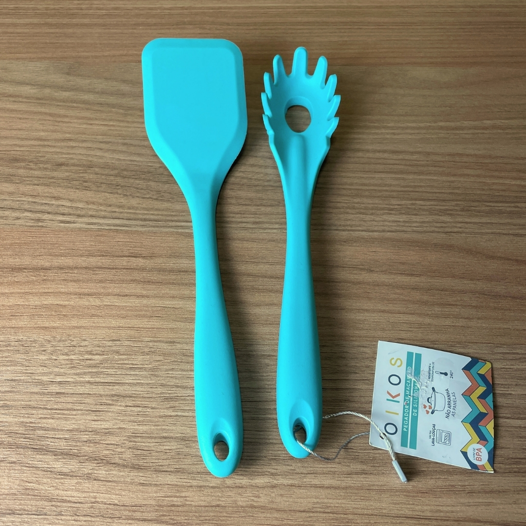 O Kit de Utensílios de Silicone Verde Piscina da Oikos foi pensado para quem busca eficiência, cuidado com as panelas e praticidade no preparo das refeições