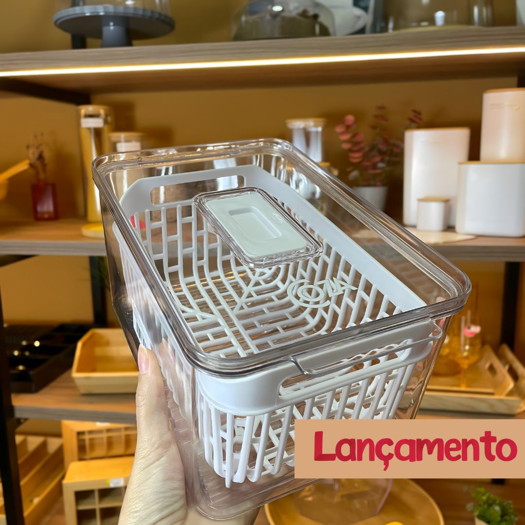 O Organizador de Geladeira com Cesto 3,2 L da linha Dry é a solução inteligente pra quem quer manter frutas, legumes, verduras e pequenos alimentos organizados, acessíveis e conservados — sem aquela bagunça bagunçada que a gente às vezes encontra ao abrir a geladeira
