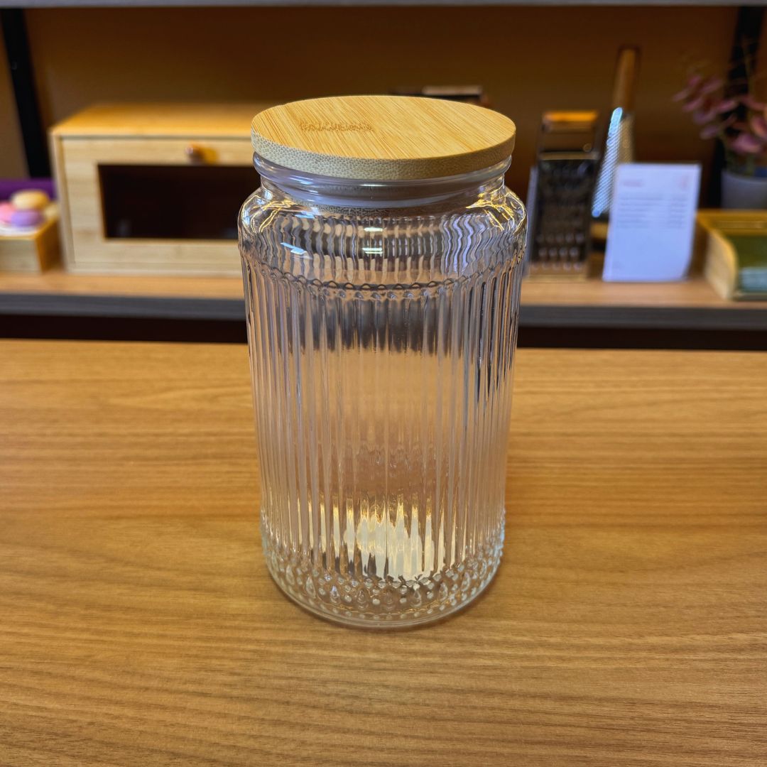 O Porta Mantimento de Vidro com Tampa de Bambu Lines 950 ml da Wolff combina beleza e utilidade em cada detalhe