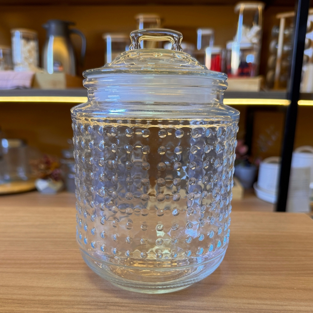 O padrão “poá” sutil no vidro adiciona textura e personalidade sem roubar atenção. A tampa hermética assegura que os alimentos fiquem frescos, protegidos da umidade e prontos para uso diário